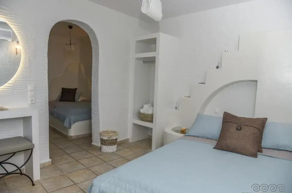 Porto Manolis offers accommodations in Porto, Tinos Island, Agios Ioannis, Greece. The property provides non-smoking rooms, family rooms, and beachfront options. Guests can enjoy free WiFi and complimentary parking. Located near several attractions including Stavros Beach at 6 km, Archaelogical Museum of Tinos at 5 km, and Agios Sostis Beach just 650 meters away. Nearby dining includes La Strada Cafe at 5 km and O Rokos Tavern at 7 km. Reviews highlight exceptional cleanliness, friendly hosts, and excellent hospitality with some guests receiving gifts like homemade spoon sweets. The location features proximity to cultural sites and beaches making it ideal for travelers seeking comfort and convenience.